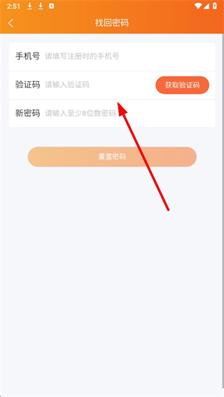 4、在找回密码页面,填写手机号,获取验证码后,再设置新密码,最后点击重置密码完成操作。