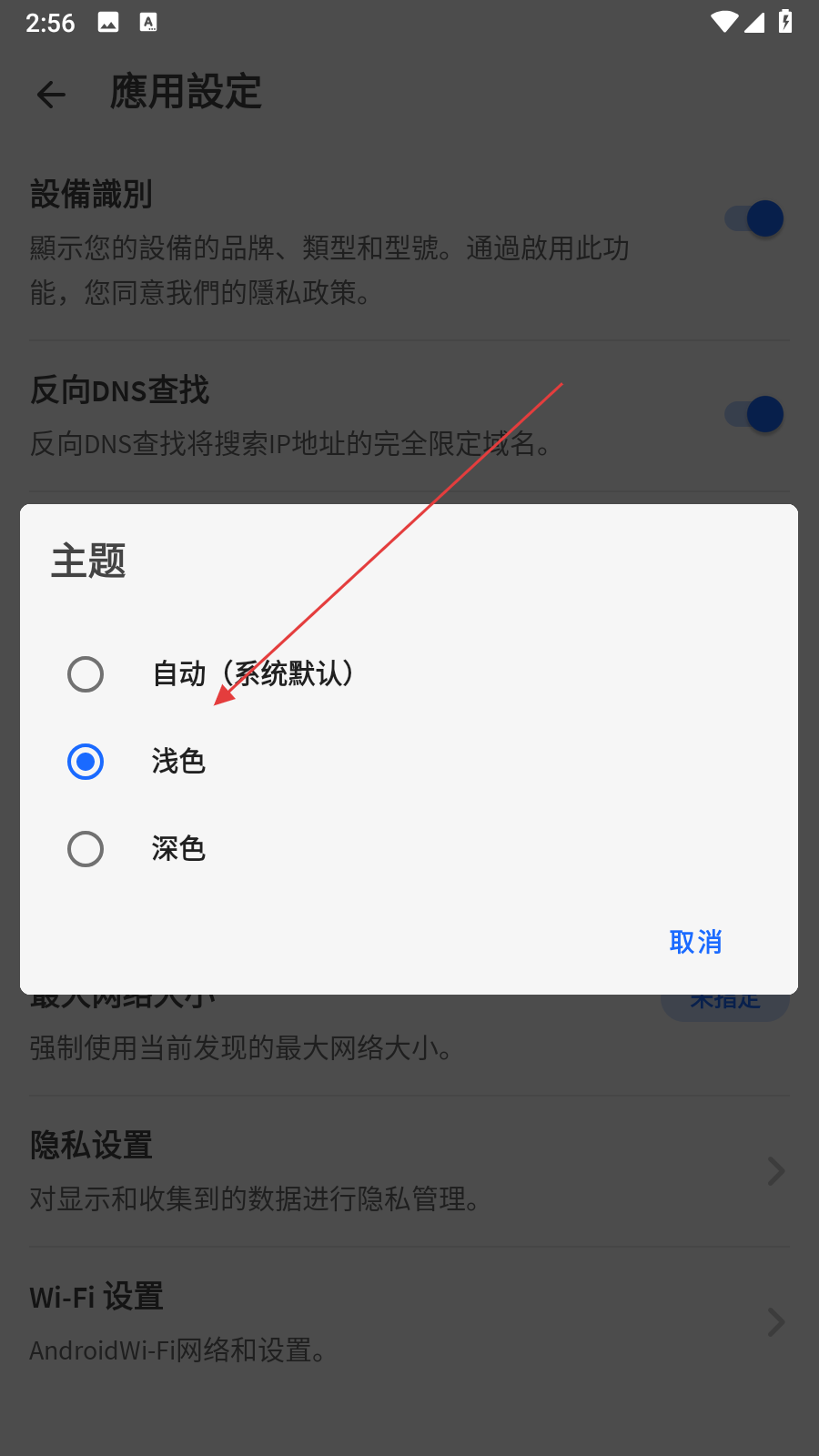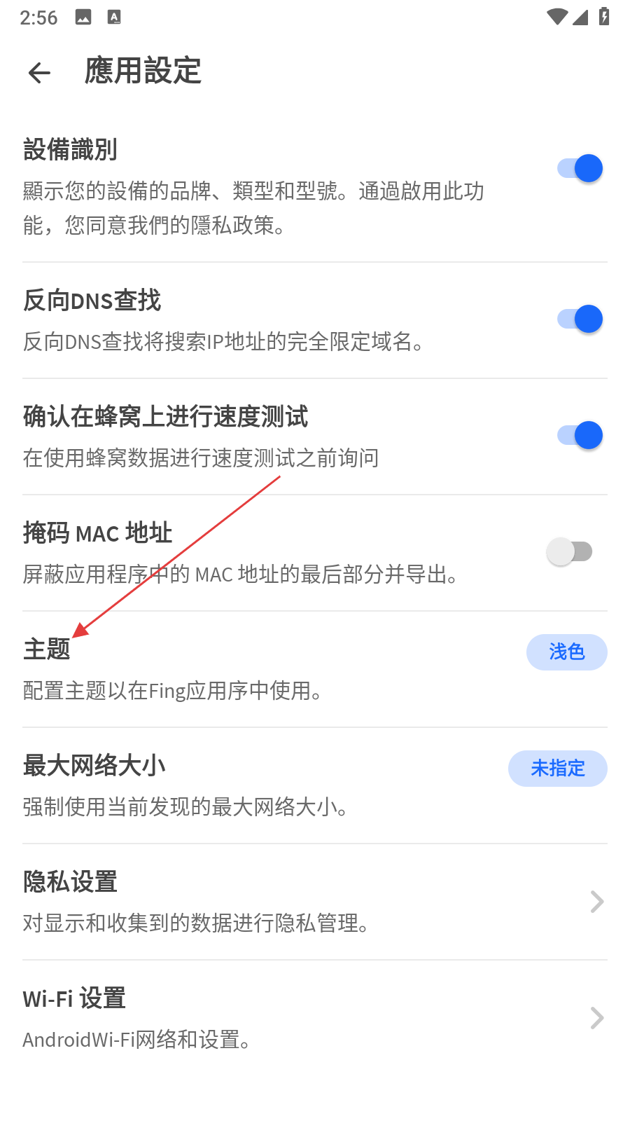 3、在应用设置界面里,向下滑动屏幕找到主题设置项,点击主题。