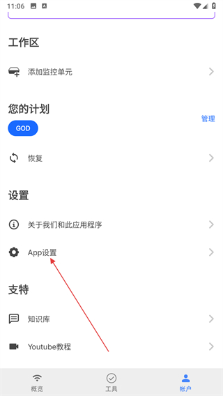 2、在帐户页面,找到App设置选项并点击,进入应用设定界面。