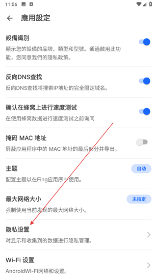 3、在应用设定页面中,找到隐私设置选项并点击,进入隐私设置界面。