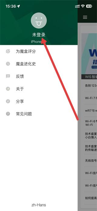 1、打开WiFi魔盒app,点击页面左上角的菜单按钮。