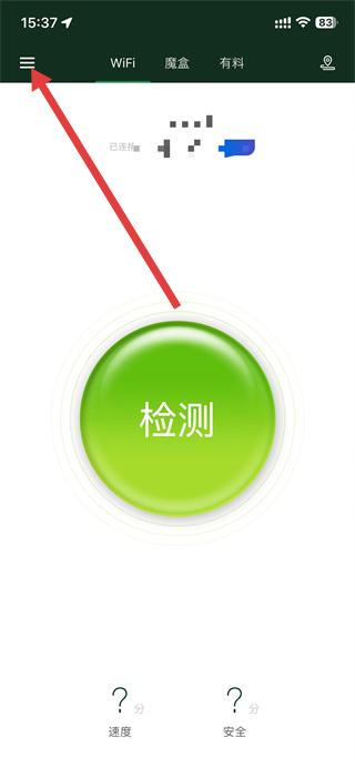 1、打开WiFi魔盒app,点击左上角的菜单。