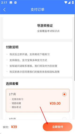 3、在弹窗中点击去购买选项,进入支付订单页面。