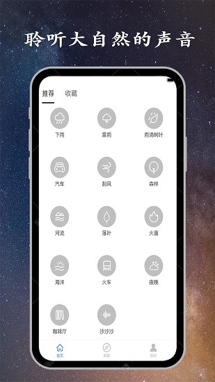 拥有14款基础白噪音,虫鸣鸟叫、雨声、海声、风声、流水声、雷声、燃烧声、环境声等任由您随意组合您想要的声音.