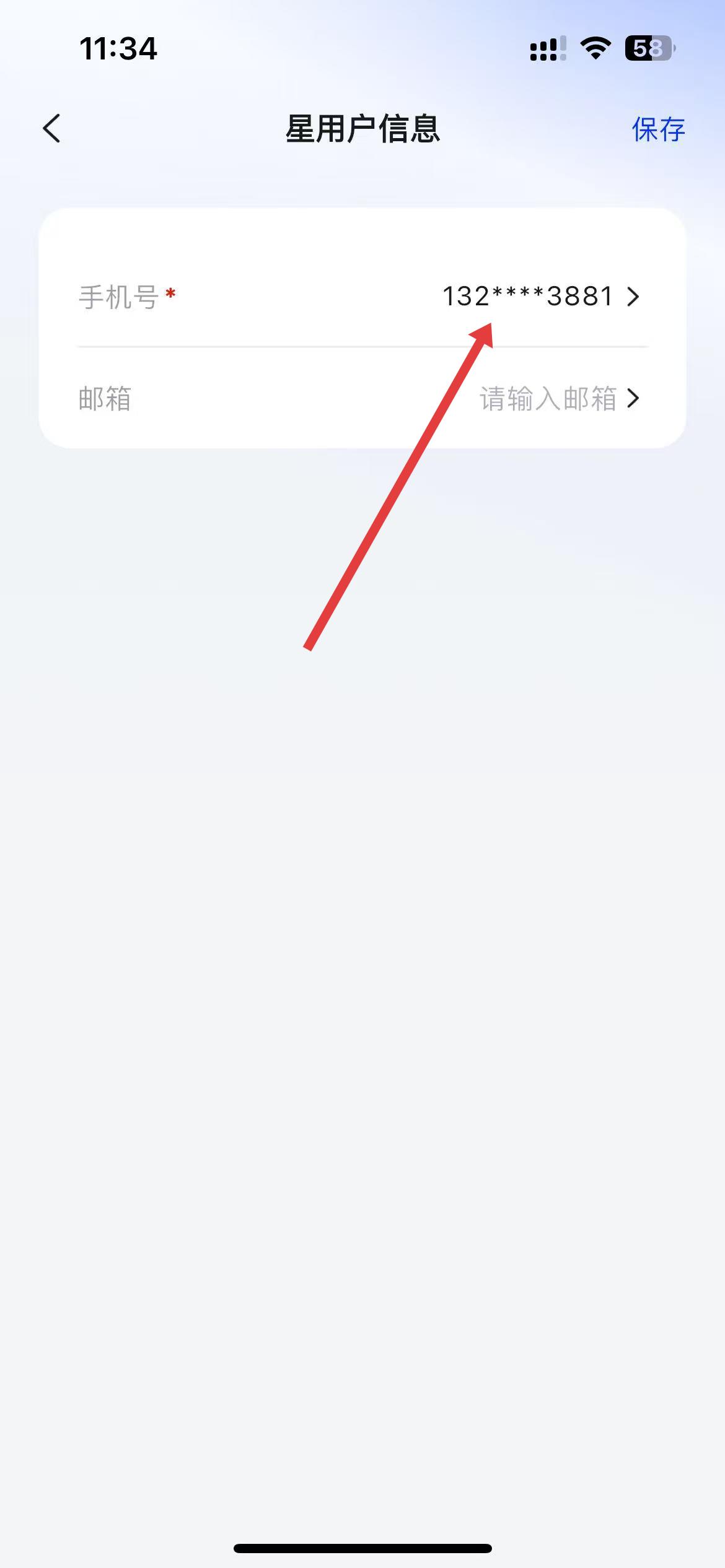 3、在星用户信息页面,点击手机号选项,进入更改手机号界面。