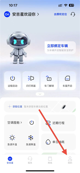 1、进入安吉星app,点击底部导航栏我的选项,进入个人页面。