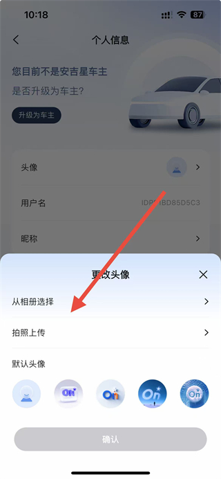 4、在更改头像菜单中,选择从相册选择或拍照上传,选好后点击确认即可完成头像更换。