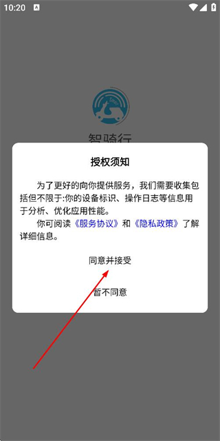 1、在使用协议隐私政策弹窗中点击同意并接受,进入登录页面。