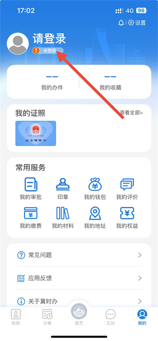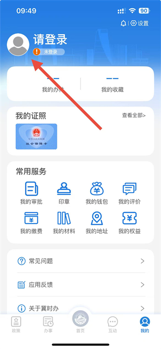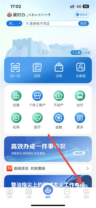 1、打开冀时办app,点击底部导航栏的我的选项进入个人页面。