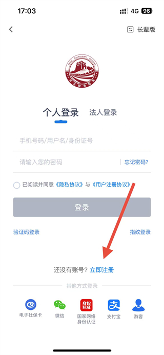 3、在登录页面中,点击立即注册选项进入注册页面。