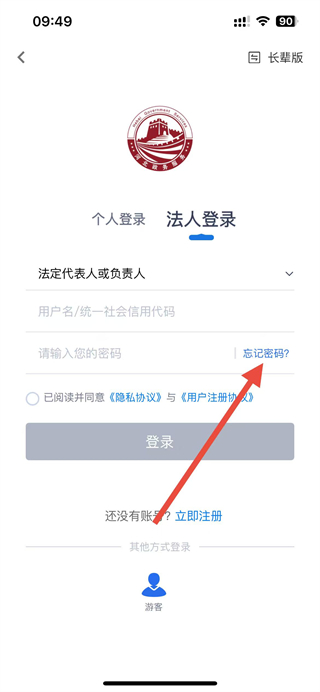 3、在法人登录页面,找到忘记密码选项并点击,进入重置密码的操作页面。