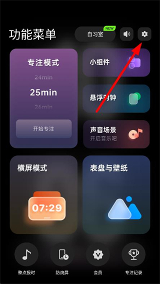 1、在翻页时钟的功能菜单界面,点击专注模式中开始专注,进入专注模式设置页面。