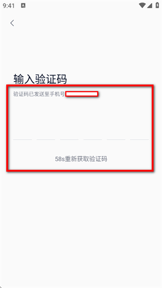 4、在输入验证码页面,在输入框,输入验证码,完成注册登录。