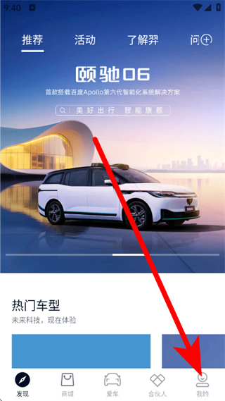 1、在小羿的推荐页面,点击底部我的,进入个人中心页面。