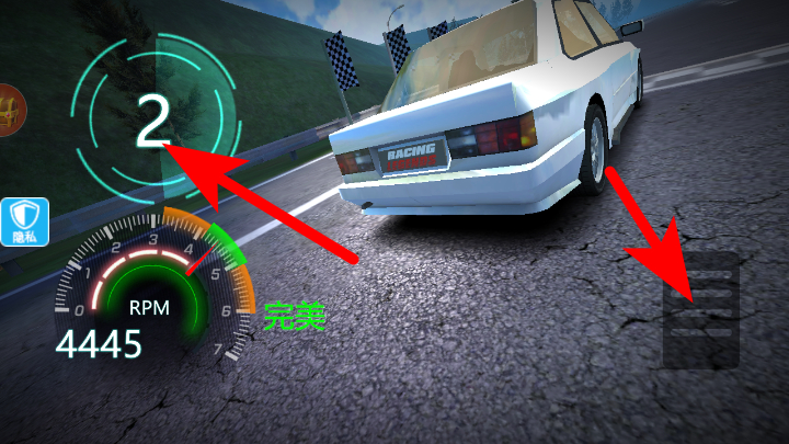 1、在比赛界面观察RPM数值,通过右侧按键控制车辆行驶。