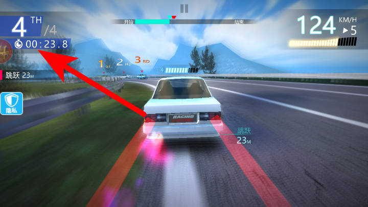 3、比赛过程中留意时间进度,借助跳跃等操作保持行驶节奏。