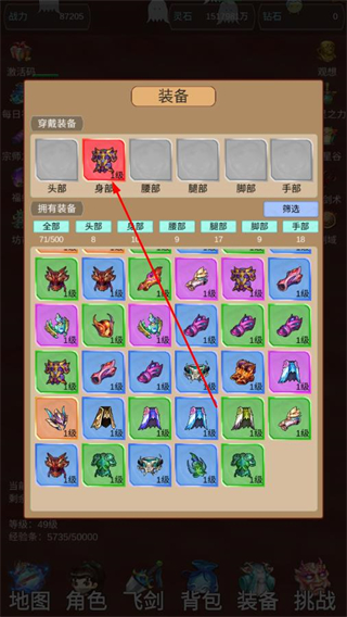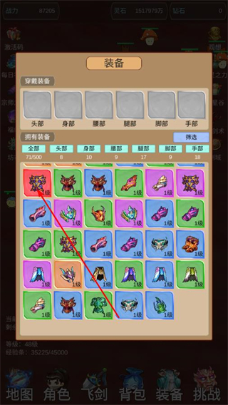 1、无需刷怪掉率、无需攒素材合成,所有品阶、所有部位的装备,均可直接用无限钻石解锁拾取,开局就能凑齐全身传说装的顶配阵容。