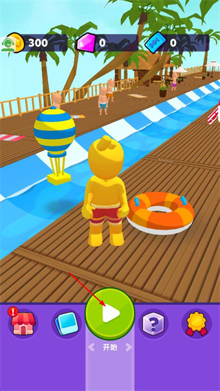 3、滑道结束后,角色会进入沙滩场景,操控角色在沙滩区域内移动,避开障碍物。