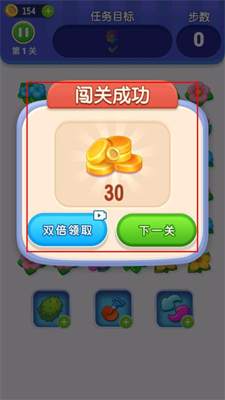 4、完成关卡任务目标后,等待闯关成功弹窗出现,可选择领取奖励,再点击下一关按钮进入后续关卡。