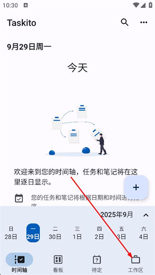 1、打开Taskito,点击底部导航栏的工作区图标。