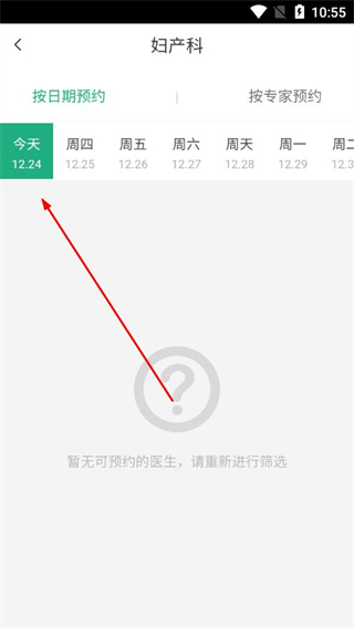 3、在科室页面,选择预约日期,即可查看对应日期的可预约医生。