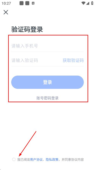 3、输入手机号、获取并填写验证码,勾选同意协议后完成注册。