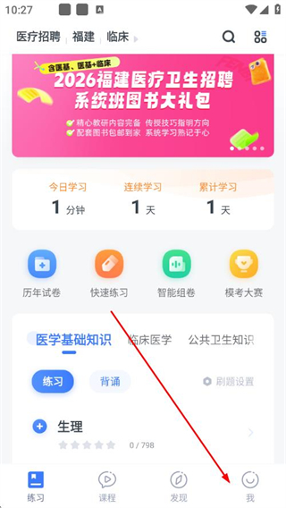 1、打开粉笔医疗app,点击底部导航栏的我选项。