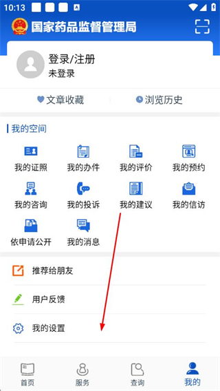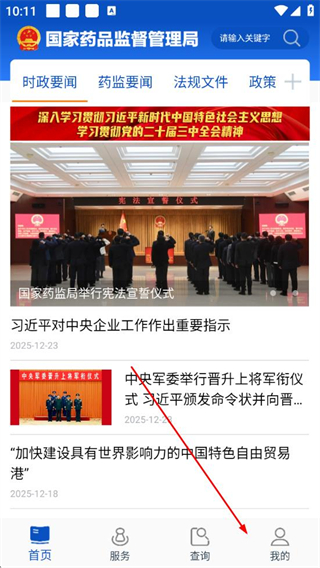 1、打开中国药品监管app,点击底部导航栏的我的选项。