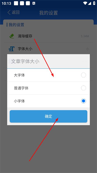 3、在“我的设置”页面,点击字体大小选项。