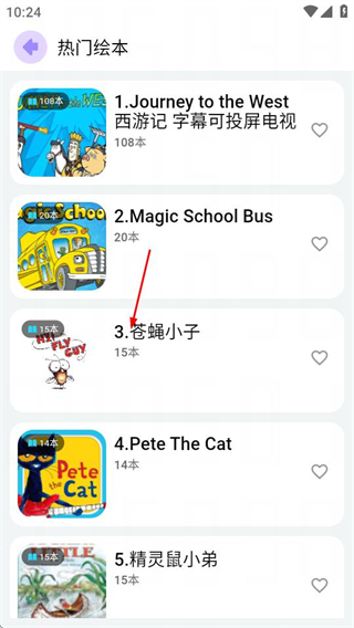 2、热门绘本列表页选择苍蝇小子可进入其详情页面。