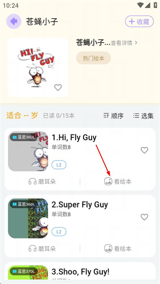 3、苍蝇小子详情页点击单本绘本下的看绘本可进入该绘本的阅读准备页。