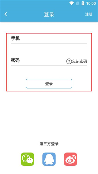 3、在登录页面,输入手机号和密码后点击登录。