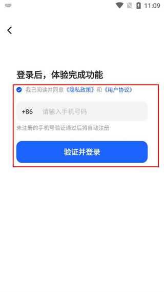 3、在登录页面勾选已阅读并同意隐私政策和用户协议的选项,填写个人手机号码。