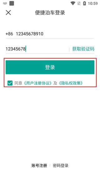 4、勾选同意用户注册协议及隐私权政策的选项,将验证码填入后点击登录按钮完成操作。