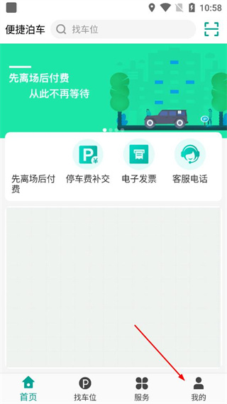 1、打开便捷泊车APP,在主界面找到底部导航栏的我的选项,点击该选项进入登录页面。