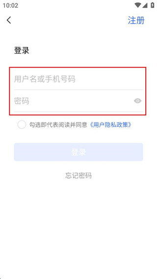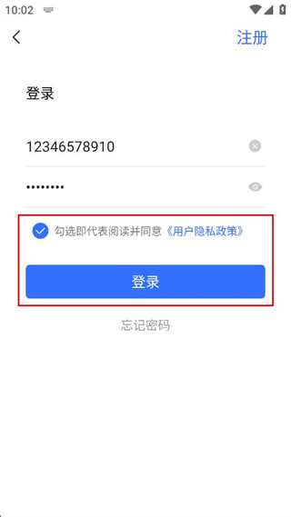 4、填写完登录信息后,勾选代表阅读并同意用户隐私政策的选项,点击登录按钮完成登录操作。
