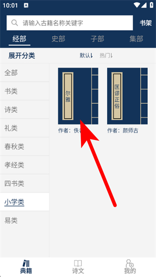 1、在古籍应用典籍页面,点击左侧小学类分类,筛选出对应古籍。