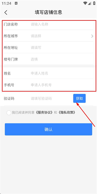 2、在注册账号页面填写信息后,点击获取按钮获取验证码。
