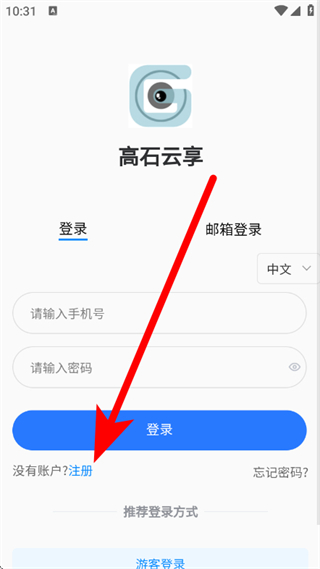 1、打开高石云享,在弹窗点击同意并接受,进入登录页面。