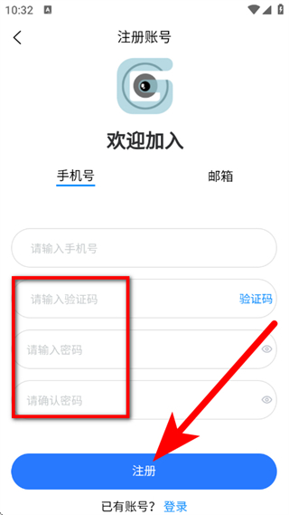 4、输入验证码,设置登录密码,点击注册,完成账号注册。