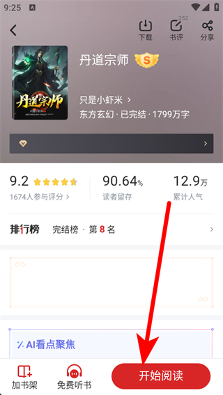 2、在书籍详情页面,点击开始阅读按钮,进入书籍阅读界面。