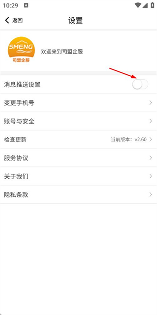 3、在设置页面找到消息推送设置,点击对应的开关按钮调整推送状态。