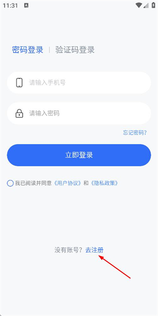 1、在登录页面点击去注册选项,进入注册账号页面。