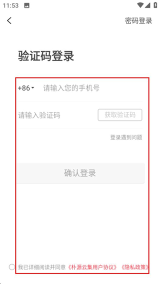 3、验证码登录页面填写信息,并勾选协议后点确认登录即可完成登录。