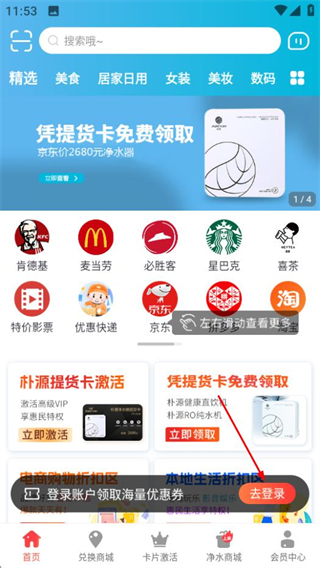 1、在朴源云集首页,点击去登录可进入登录选择界面。