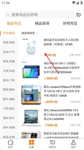 2、商品分类页面选择目标商品,可进入商品详情页。