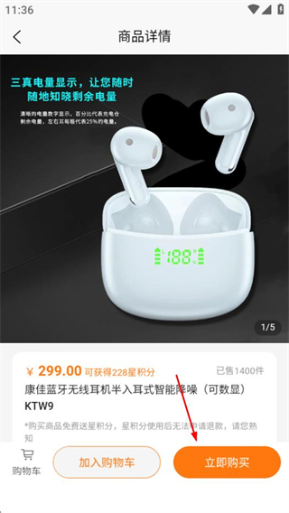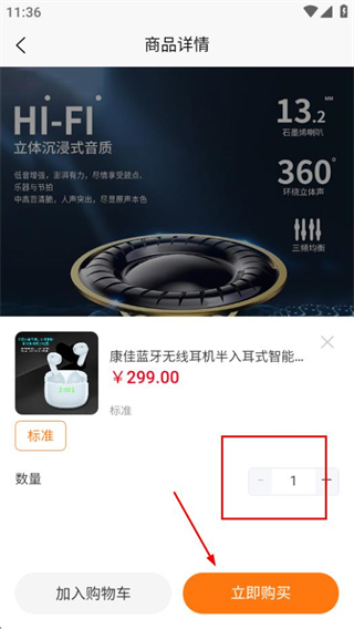 3、商品详情页点击立即购买,可进入规格选择界面。