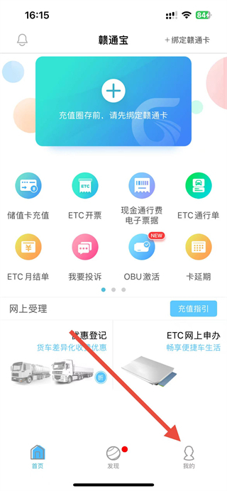 1、打开赣通宝app,在首页点击右下角我的进入个人页面。