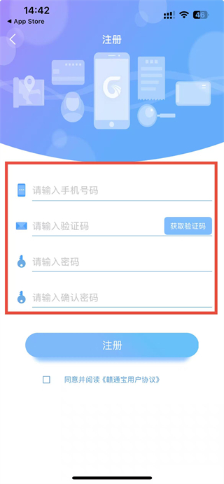 3、勾选同意并阅读赣通宝用户协议后,点击注册按钮,即可完成账号注册操作。