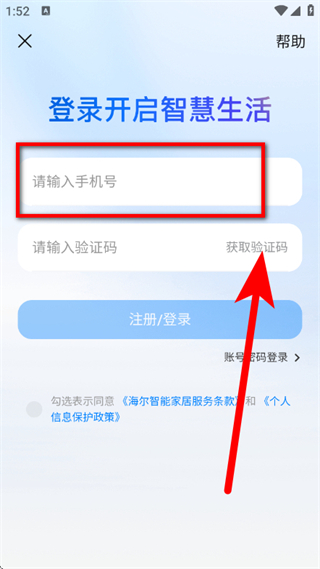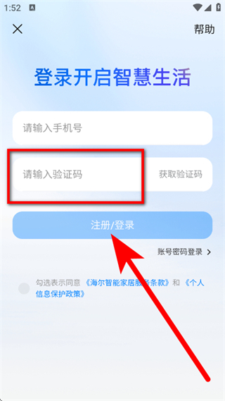 4、输入验证码,勾选相关服务条款后,点击注册登录,完成注册。